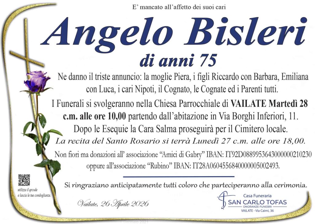 I Funerali si svolgeranno nella Chiesa Parrocchiale di VAILATE Martedì 28