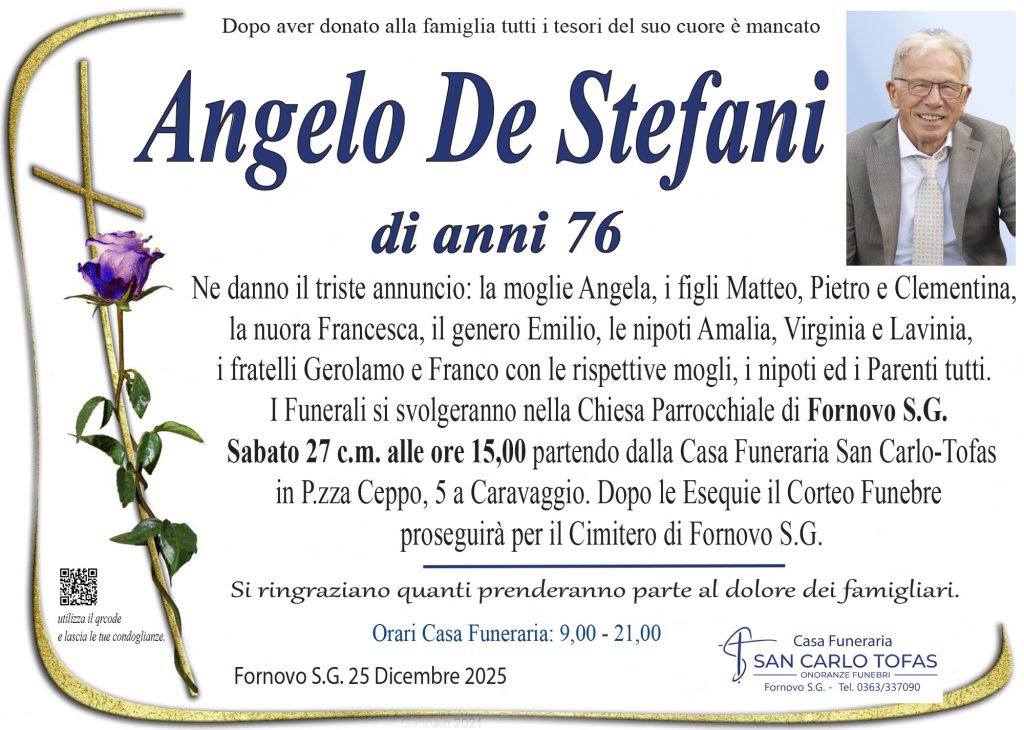 Ne danno il triste annuncio: la moglie Angela, i figli Matteo, Pietro e Clementina,