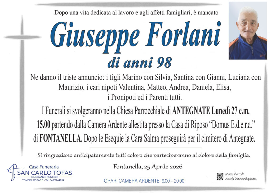 Si ringraziano anticipatamente tutti coloro che parteciperanno al dolore della famiglia.