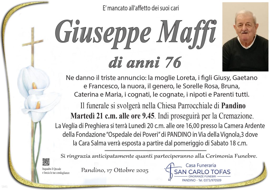Il funerale si svolgerà nella Chiesa Parrocchiale di Pandino